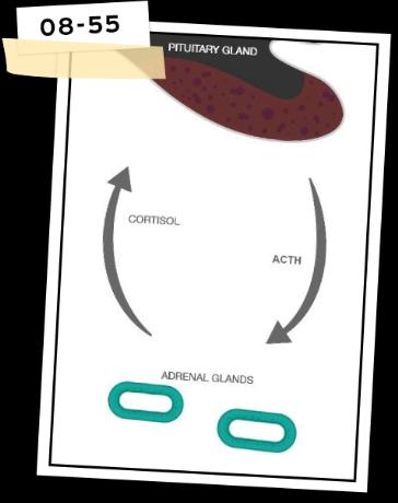 Som nævnt ovenfor er hypofysen placeret nederst i hjernen og er ansvarlig for produktionen af ACTH, som får binyrerne til at producere kortisol.