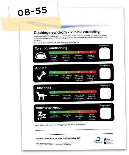 Da det er vigtigt at overvåge de kliniske tegn (symptomer) på Cushings, er Cushing’s Clinical Score blevet udviklet, så det er nemt at registrere og holde styr på de vigtigste symptomer. Det anbefales at udfylde scoren før hvert besøg hos dyrlægen og dele resultaterne med dyrlægen.