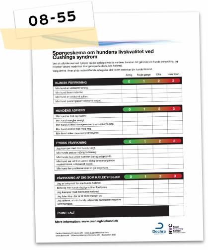 Når hunden behandles for Cushings syndrom, forbedres livskvaliteten for hunden og dermed også for dig selv. CushQoL-pet-spørgeskemaet måler din og din hunds livskvalitet og kan hjælpe med at identificere områder, hvor der er potentiale for forbedring.